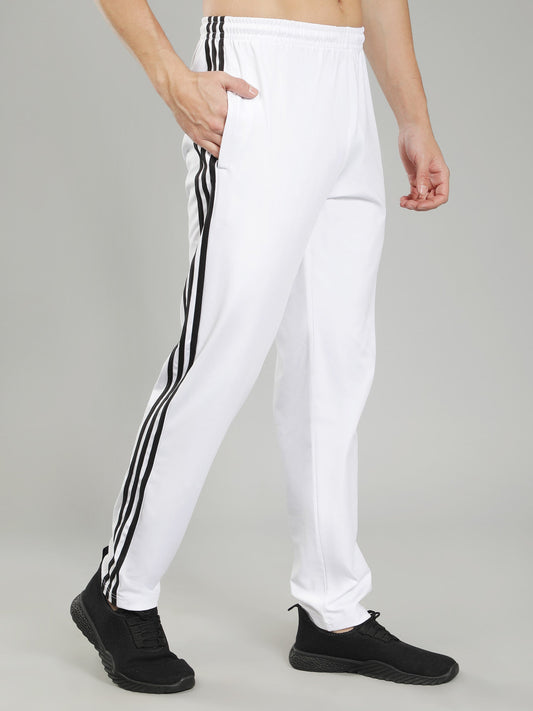 Adidas Solid Casual Men White & Black Strips Track Pants