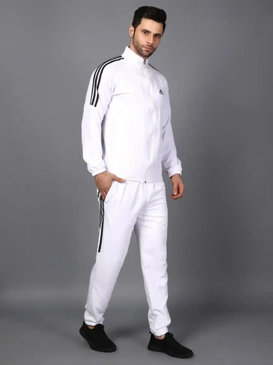 Adidas Solid Casual Men White & Black Strips Track Pants