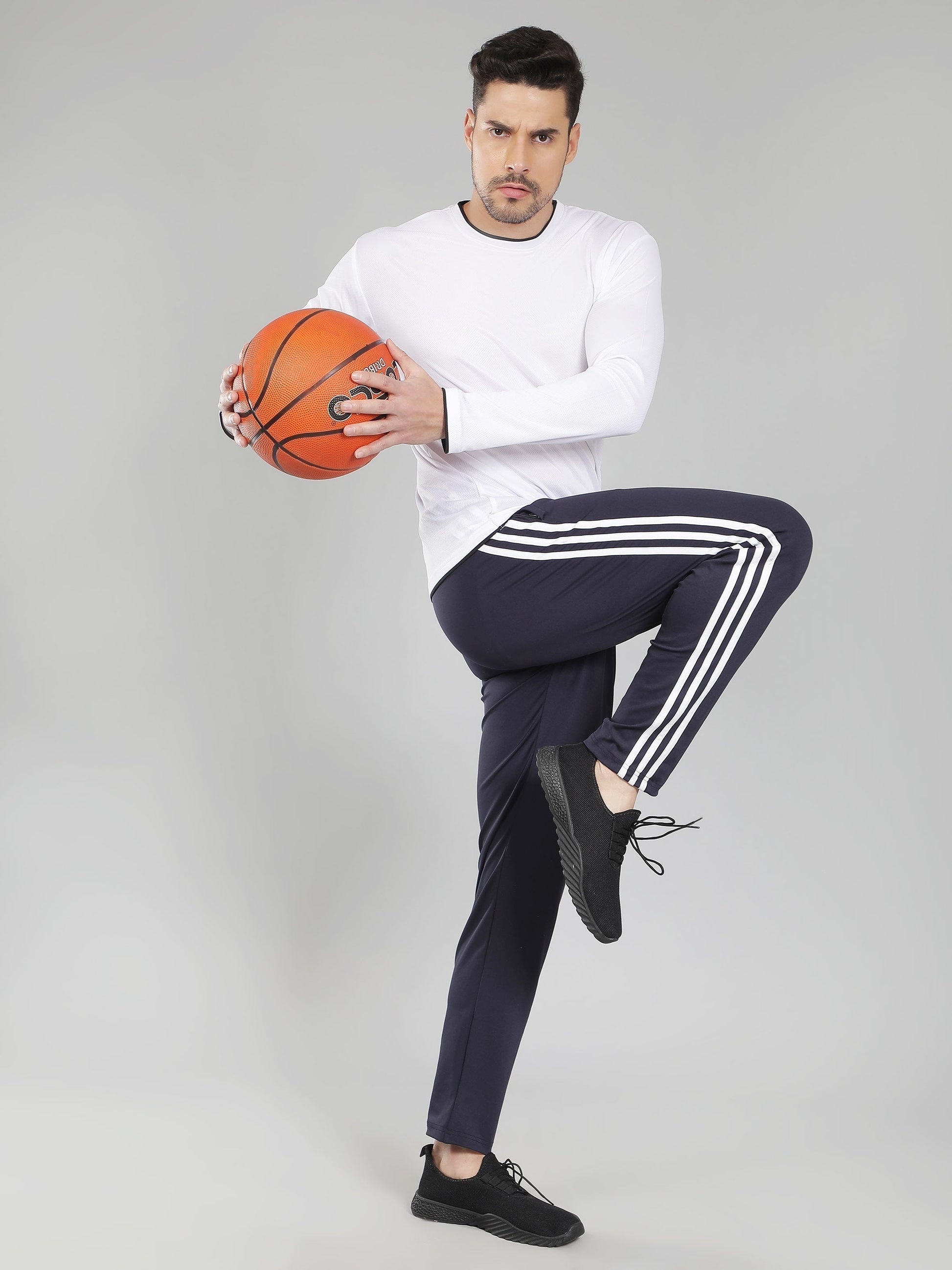 Β Solid & Casual Men Navy Blue & White Stripes Track Pants